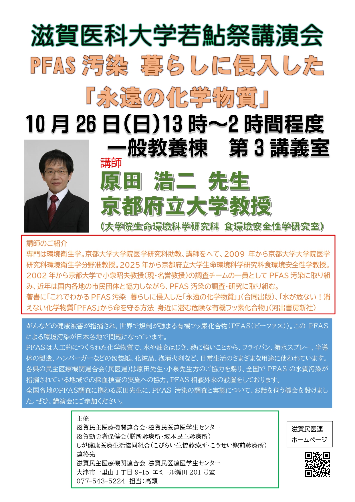民医連主催で、滋賀医大の若鮎祭で講演会を行います。ぜひ、ご参加ください。参加費無料です。